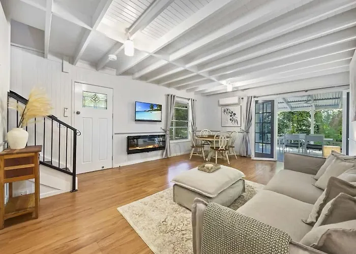Puddleduck Cottage - Garden Hideaway Near Maleny, Tree Frog Gallery'a kolay bir erişim sağlamaktadır. Villada 2 yatak odası, donanımlı bir mutfak ve 2 banyo odası vardır.